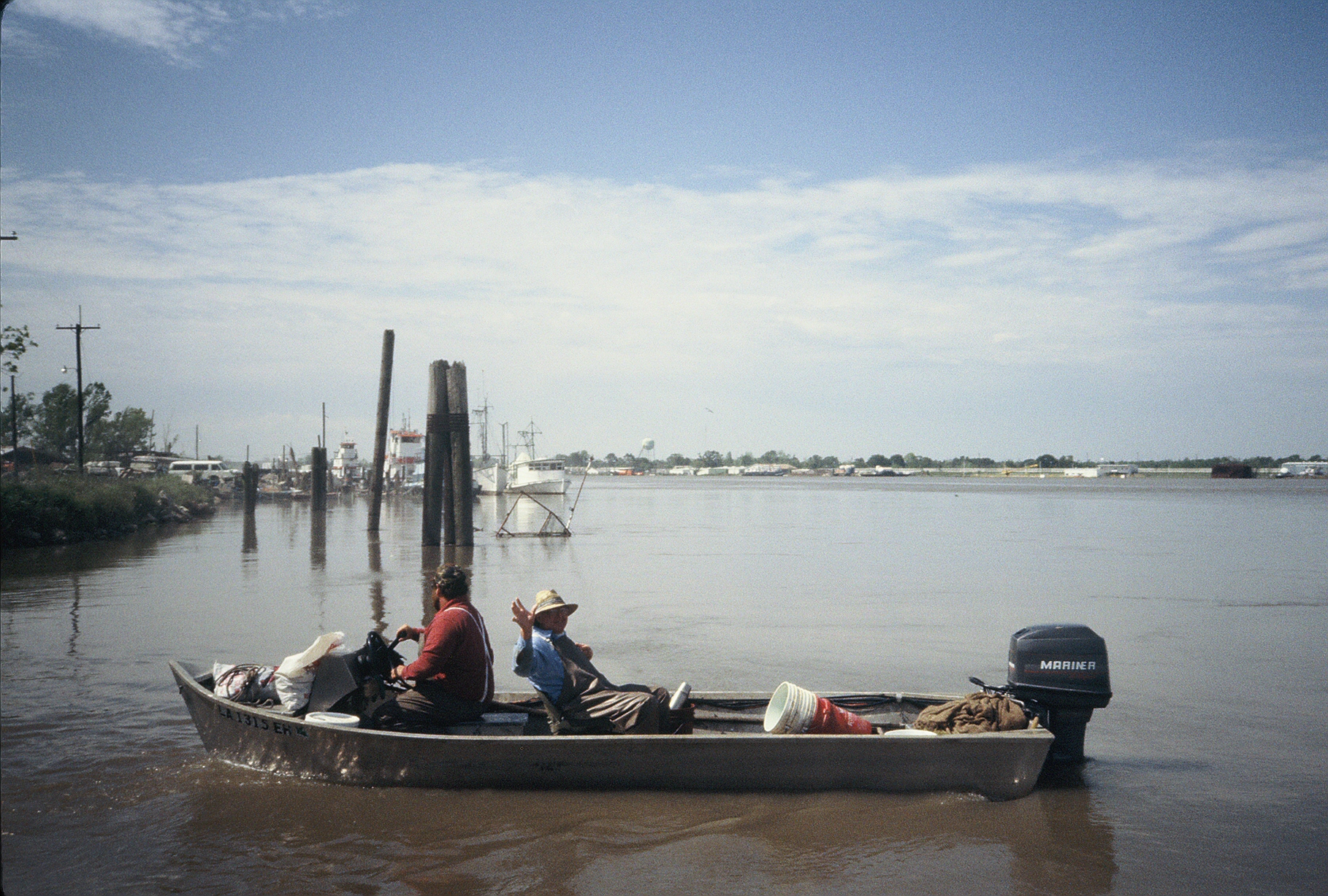 - River people are always willing to give. This guy gave us a ride into a Louisiana village to get gas for the Party Hut.