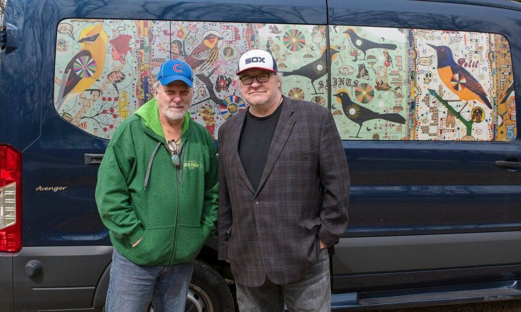 The van visited the Iowa State Fair, the Big Texan in Amarillo, TX., Merle Haggard’s favorite diner in Redding, CA., a ferry ride to Washington Island, WI., Deer Isle, ME. (not far from where John Steinbeck began Travels With Charley” in his camper van, Salinas, Ca. (where we visited Steinbeck’s “Rocinante” camper van.), Coeur d’ Alene, ID., Ocean Lakes in Myrtle Beach, SC.. the Flora-Bama in Pensacola, FL, Alvin & Charlie’s gay campground in Eureka Springs, AR (you’ll have to read the book), Worlds of Fun in Kansas City, Mo. and more. We even did a couple of van remotes for my WGN-AM show including this one from FitzGerald’s in Berwyn with singer-songwriter Curtis McMurtry.
