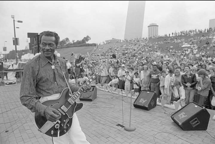 Chuck Berry in St. Louis arch concert circa 1986.