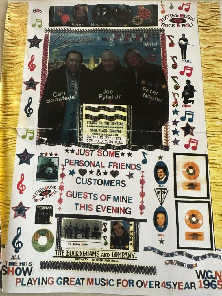 Bonafede had no need for social media. He sent out colorful hand-made flyers with cut out ‘45s, twinkling stars and clef notes. In 2010 Bonafede found an empathetic biographer in former Sun-Times sportswriter Joel Bierig who composed his 16-page “Royalty in Rock and Roll” magazine that in 2016 became the 346-page “The Screaming Wildman (Vibrations from the Dawn of Chicago Rock).” Bonafede told Bierig that he once scored a new car by winning the Sun-Times “Beat the Champions” bowling contest. He did have balls. At the time Bonafede was working as a security guard.