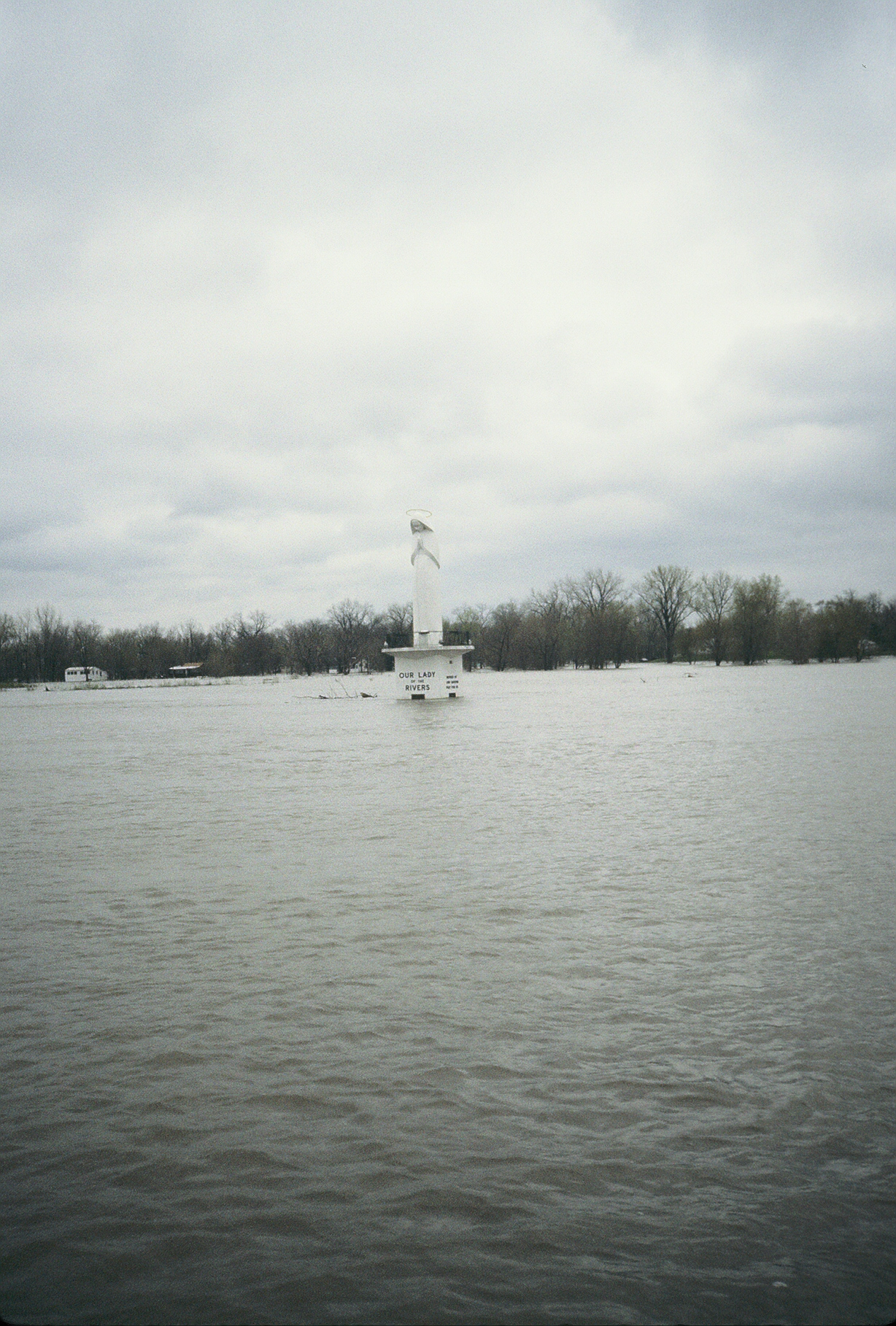 - The Our Lady of the Rivers Shrine, built in 1951 by river people who survived the Mississippi River flood of 1951. The Madonna is normally 50 feet high. She wasn’t in the spring of 1993. The shrine is near Portage des Sioux, Mo, about 30 miles north of St.. Louis.